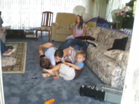 My nephew Paul under a pile of kids
