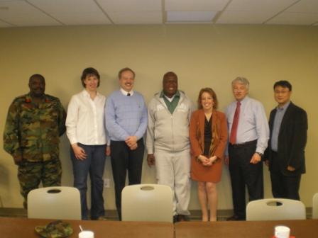 Given the above, you can imagine my glee when I received a message on my office phone from the North Dakota SPP liaison on Tuesday saying the Director of NADMO, Kofi Portuphy was in North Dakota and had requested that he be able to visit me and other representatives from our program on Thursday. A few phone calls later and we arranged for a small gathering today. Kofi was escorted to NDSU by Doug Friez, former Director of North Dakota Emergency Management and Major Brock Larson the North Dakota National Guard SPP liaison. Also visiting NDSU today with Kofi was Colonel Isaac Tetteh of the Ghanaian Military. It was a fabulous visit and an opportunity for the faculty and students who were able to attend to hear about the challenges and successes that Ghana has experienced. I know that our emergency management students from Somalia, Sudan and Ghana were particularly thrilled to be able to hear from Kofi and the Colonel about the state of emergency preparedness and democracy in not only West Africa, but also Africa generally.