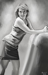 My lovely photographer  (Misty of Dreaming in Color Photography) who took last year’s photos gave birth to an adorable baby boy over the past year and has of course had her hands full, but I will still hope to move forward this year with a pictorial documentation of my progress.  As you will recall, Misty took the photo from last year that has now become infamous (the 80’s rock band cover as it has come to be known by family and friends) and which is represented in sketch below by a very talented family friend, Brian Jackson.
