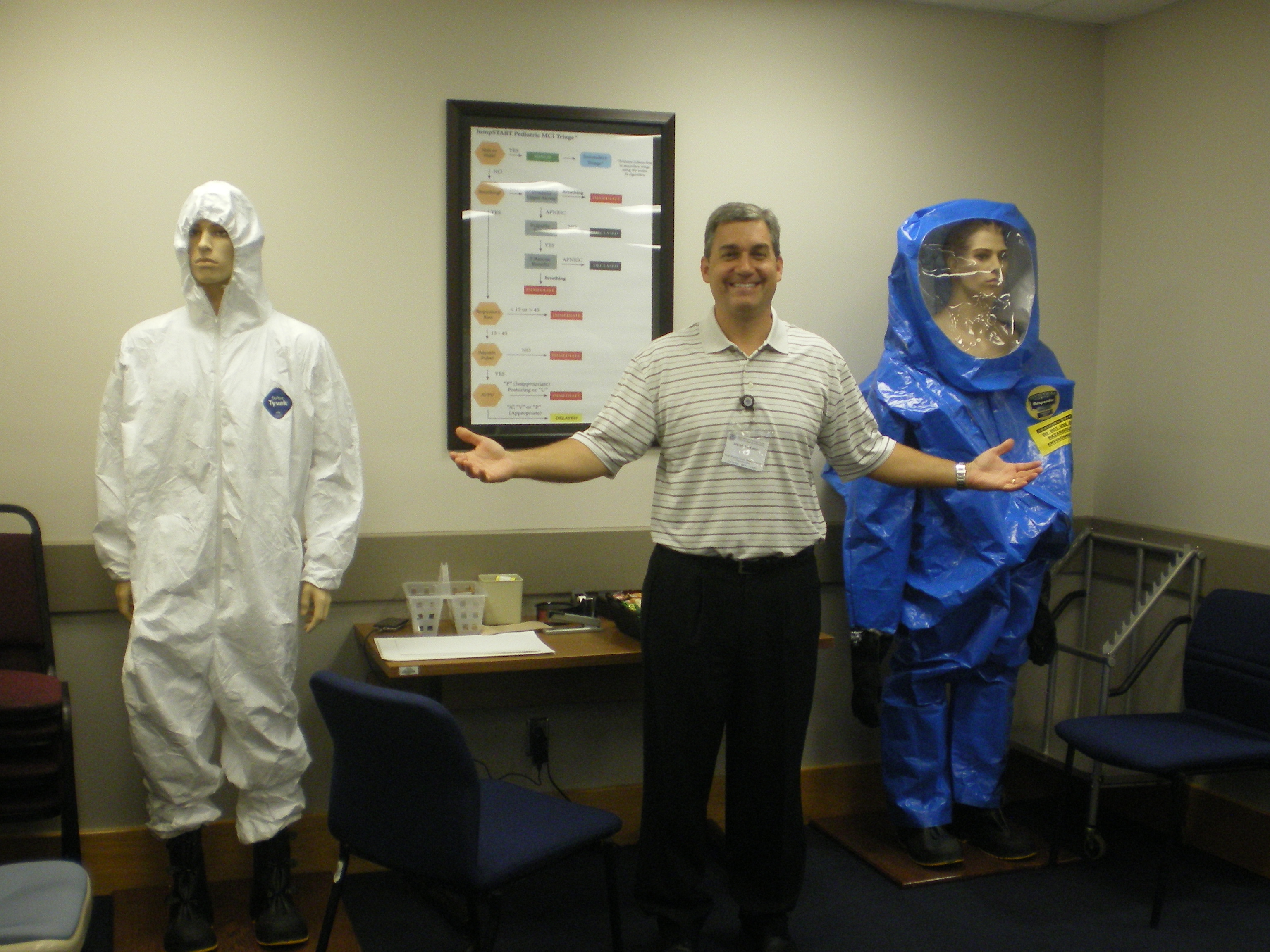 I shared Charlotte’s story with Dave and other folks at the course. Dave capitalized on Charlotte’s story to quip that the mannequins in the room attired in haz mat attire were really wearing ghostbuster suits to deal with Charlotte and the other spirits hanging around the building. That little observation earned Dave recognition as an honorary ghostbuster. Clearly, he is excited about this new opportunity in his life. πŸ˜‰