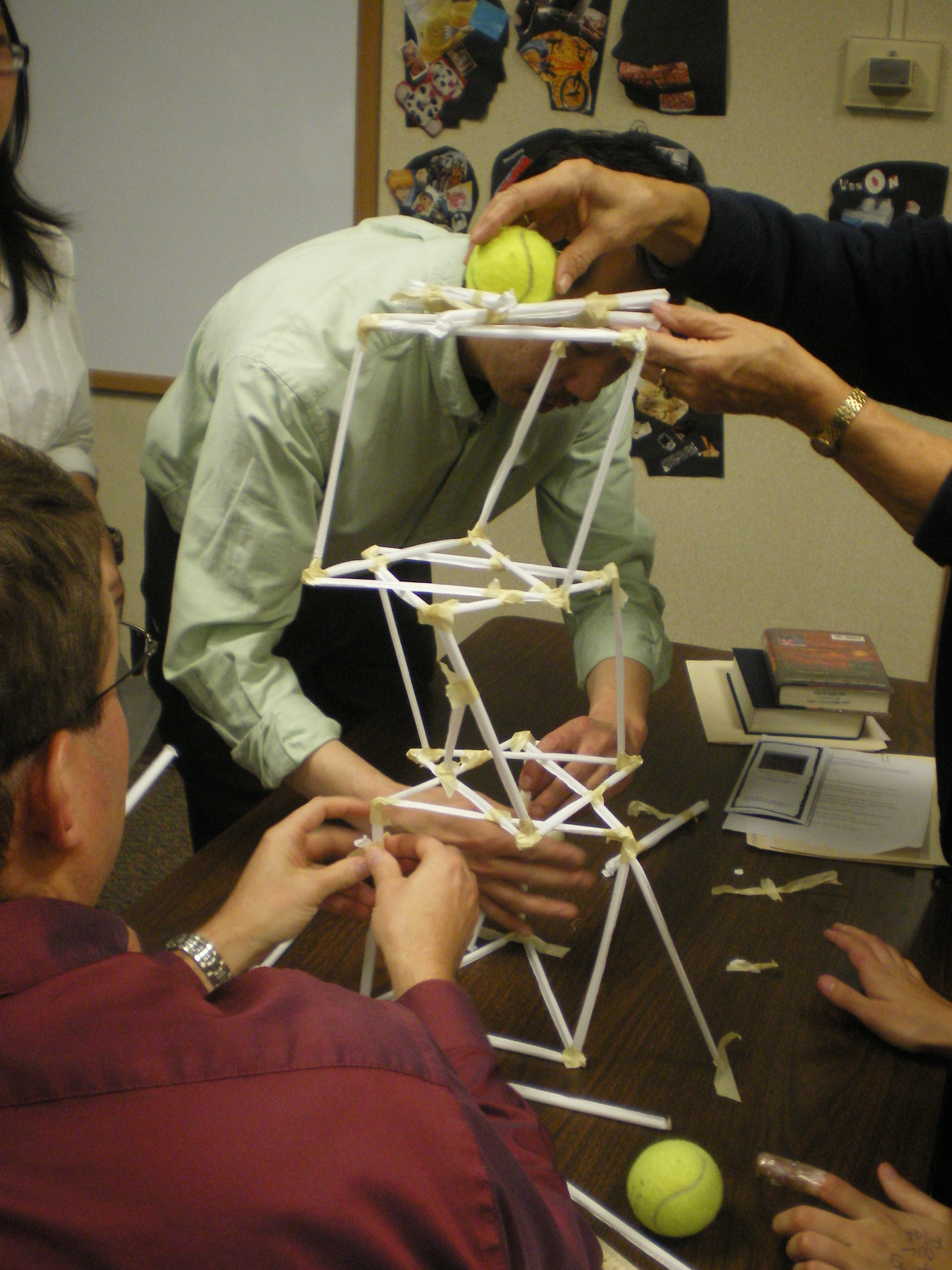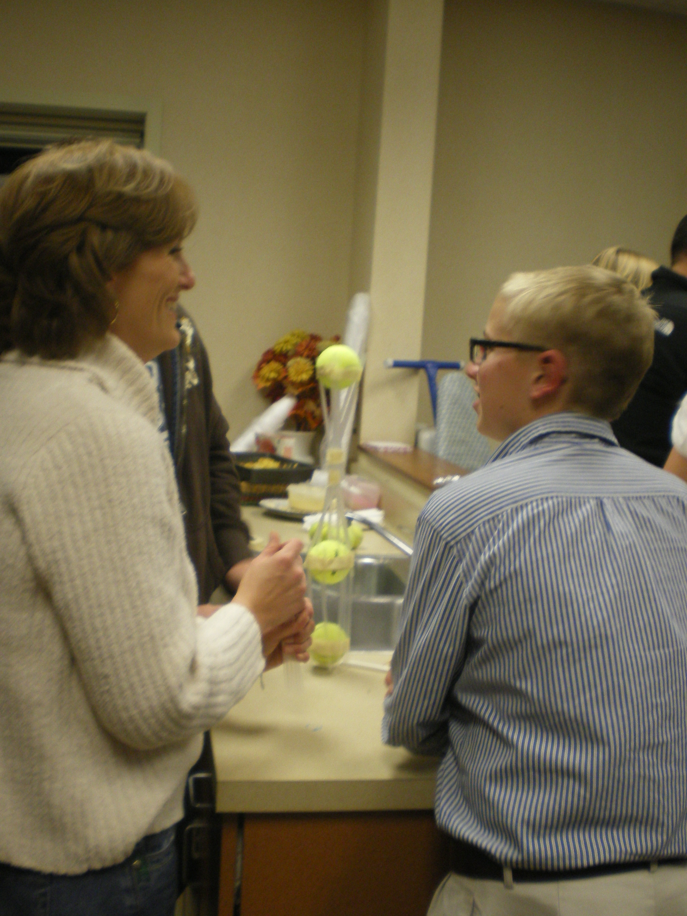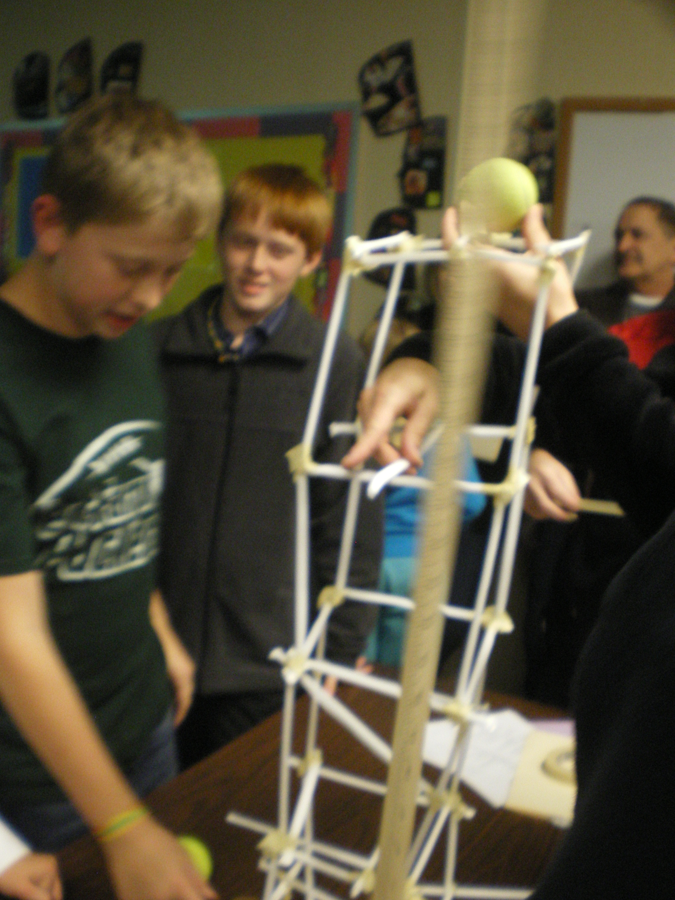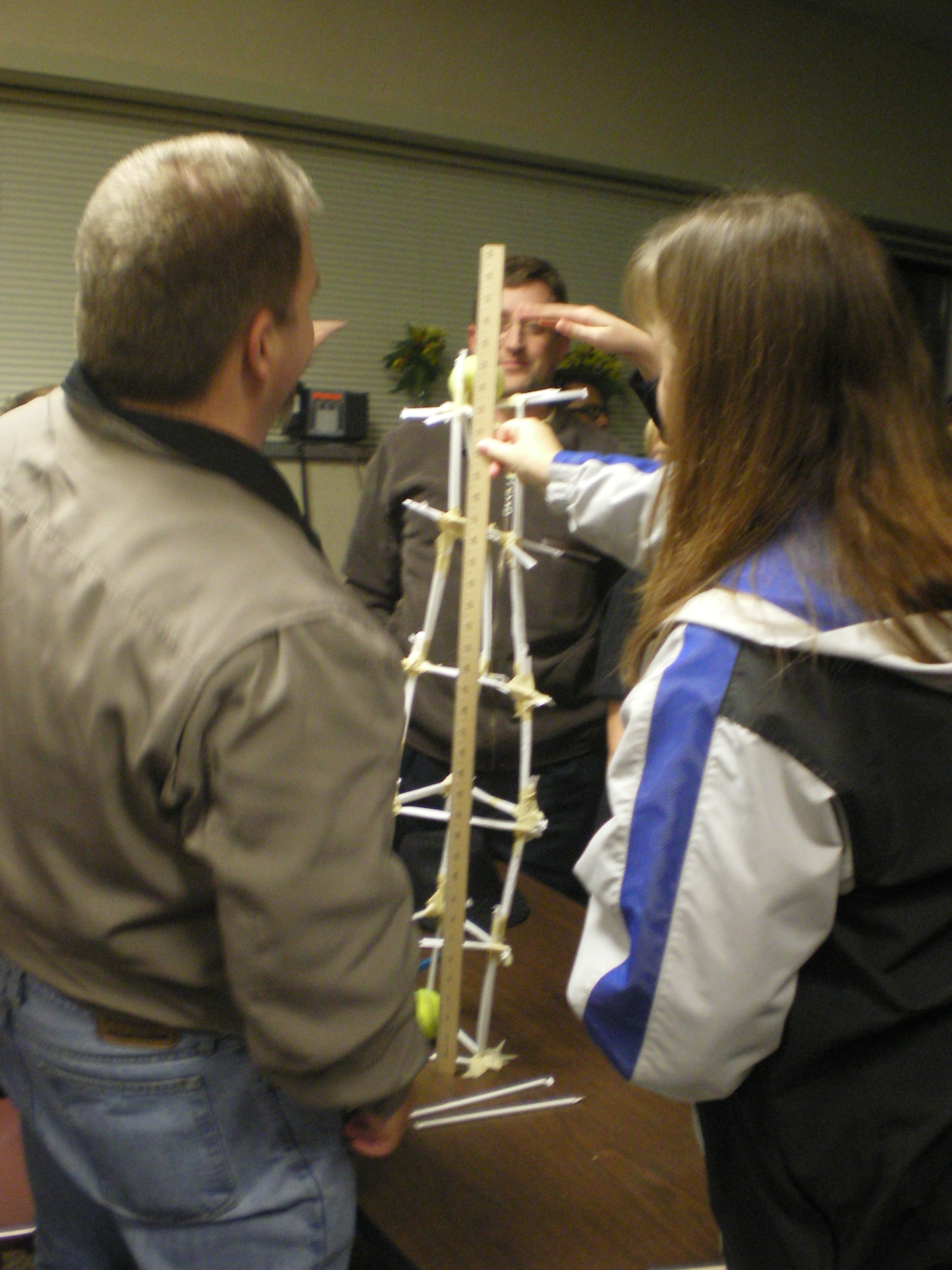 One of the activities focused on team building and the value in fostering creativity, collaboration, communication and critical thinking in problem solving. That resulted in tables of parents and kids trying to build the tallest structure they could in 10 minutes. It was great to see how engaged the parents were with the kids on this activity. It was difficult for the 7th grade teaching team to reel them back in after that activity to talk about what lessons were learned in the process (they were all a-buzz amongst themselves about the experience, evaluating their structure and sharing afterthoughts for future designs). I guess that was the whole point. 😉
