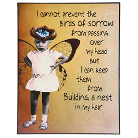 One of my all-time favorite catalogs is the Signals catalog. The Signals catalog features an eclectic mix of items – items you don’t see every day in other catalogs. The items I tend to lean toward are the ones that are the most unique and that strike me as saying something important (either by virtue of the image or the words). In looking through my latest Signals catalog today I saw a plaque that resonated with me. It resonated because I have been griping about the recent repair costs to my car and it reminded me that I needed to accept what is and stop lingering in the negativity of it…it reminded me to move on.