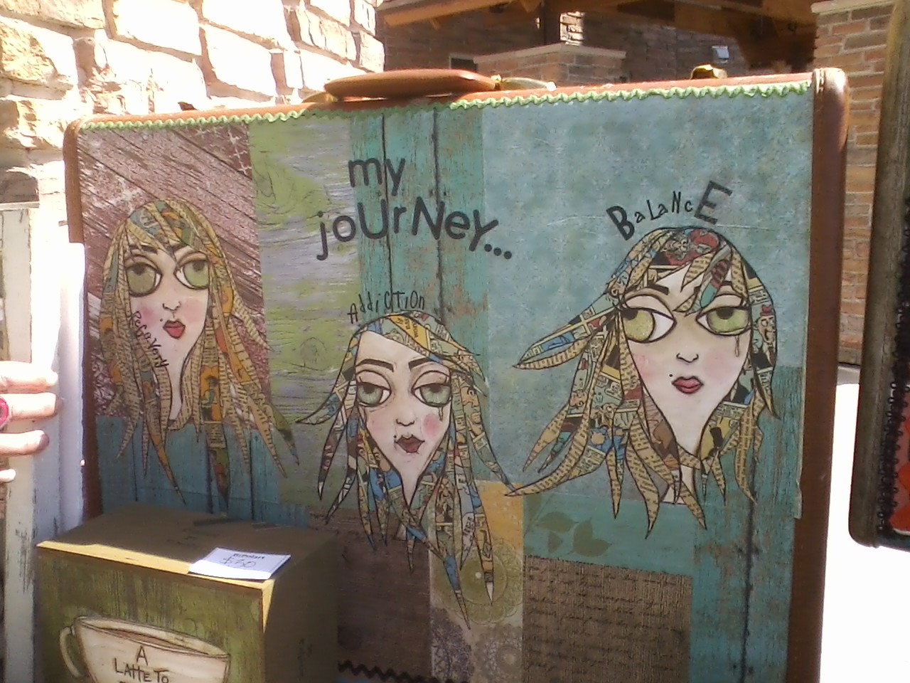 While at the Junk Market I found a new favorite artist named Kristine Thykeson. Kristine has struggled with addiction and mental illness in the past. Her expression of self through these struggles became Bipolart. Kristine’s art has a haunting style that seems to both acknowledge struggle and affirm life at the same time. Her work is so uniquely hers that once you have been exposed to it you will be able to pick out her work the same way you would be able to pick out the work of Rembrandt, Klimt or Warhol. Needless to say (but as usual – saying it anyway), I had to have some of Kristine’s work. I just love her expression of self…perhaps it is the honesty in the work that makes it so compelling. I find her work to be riveting.