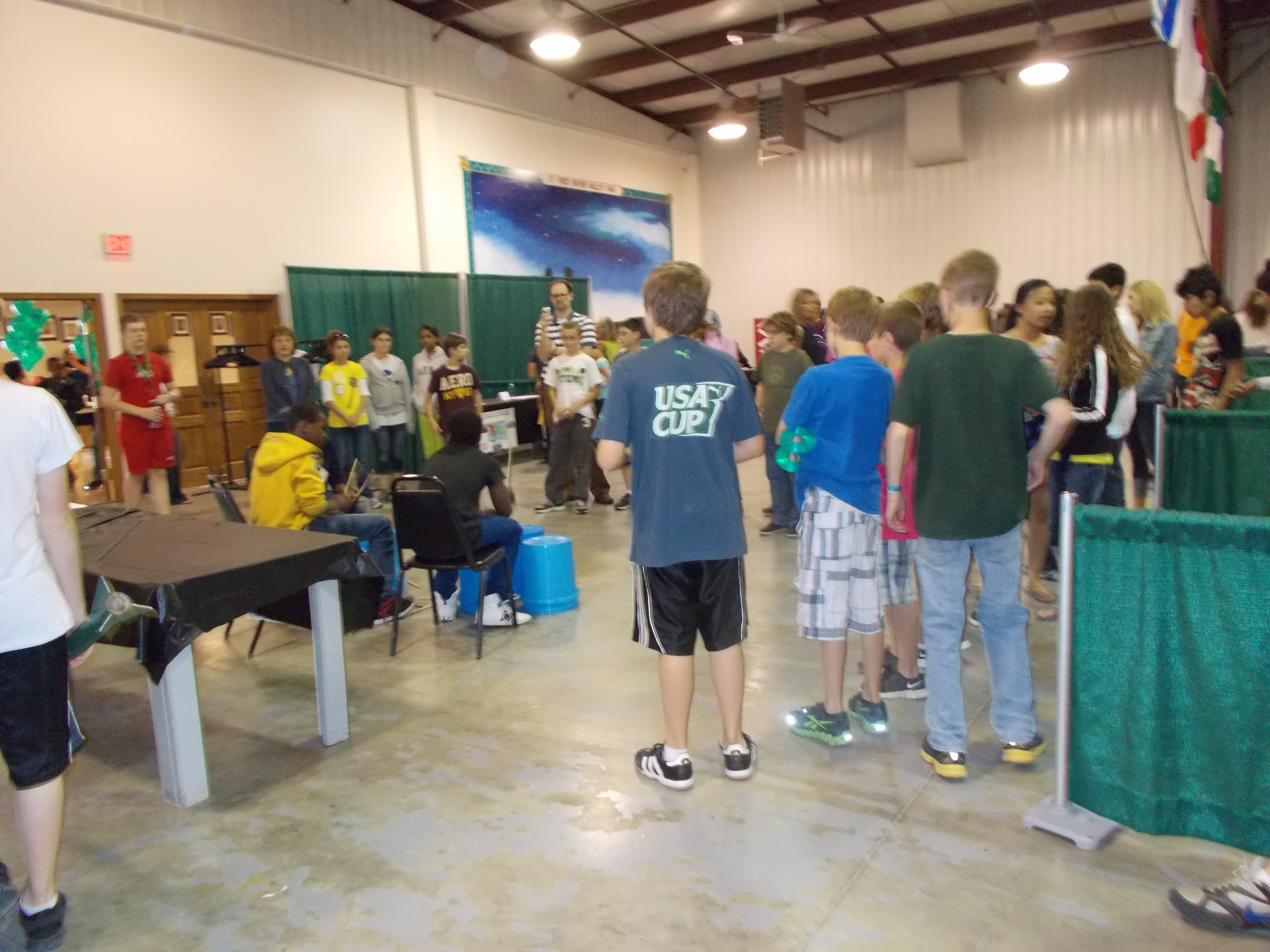 There were a number of ELL students at the soiree – but my favorites were Olivier Nigaba, Eliachim Bucumi, and Claude Vyamungo who came from Cheney with their teacher Brad Storm. These three young men played drums on a group of 5 gallon buckets. They drew quite a crowd.