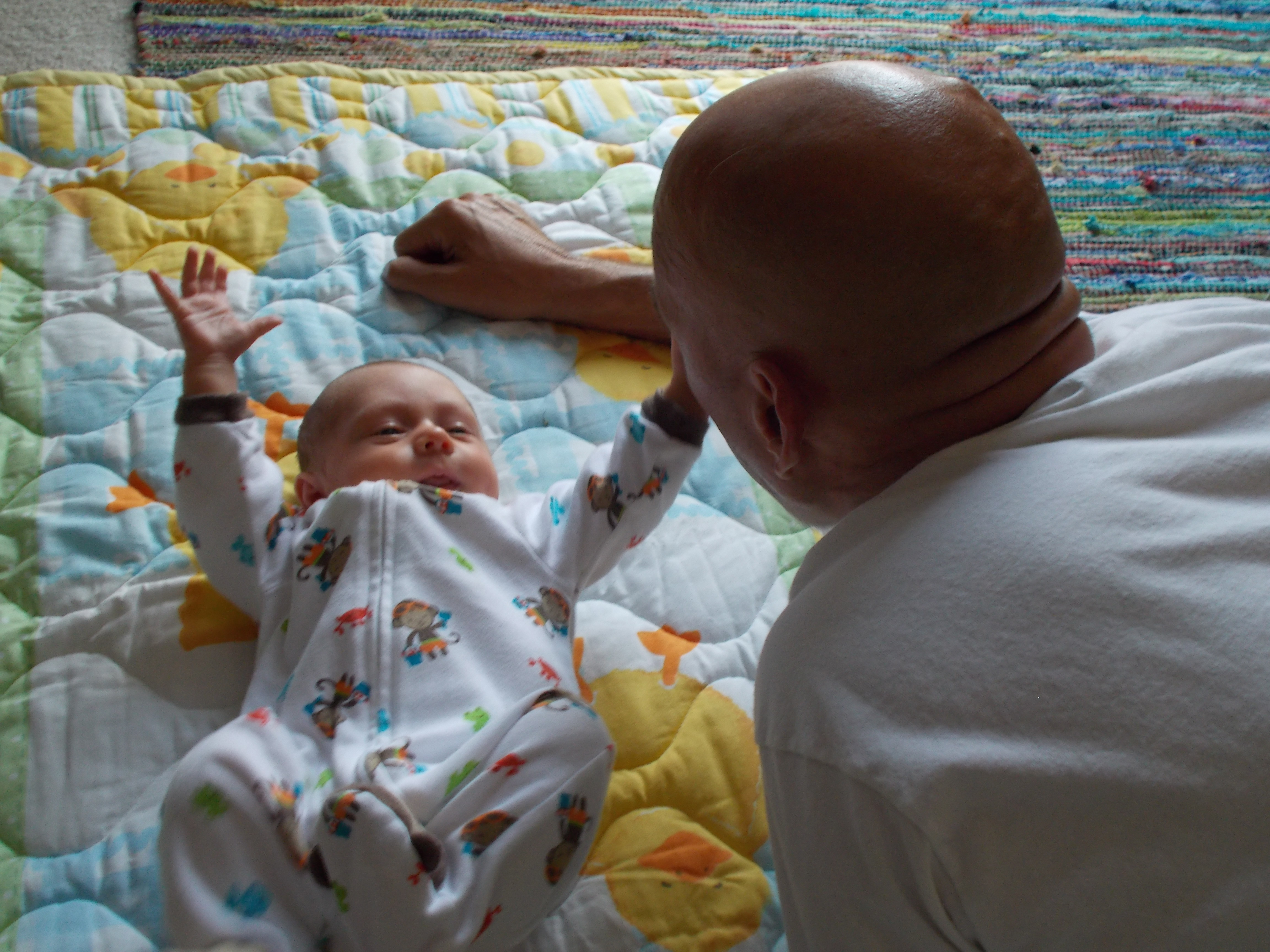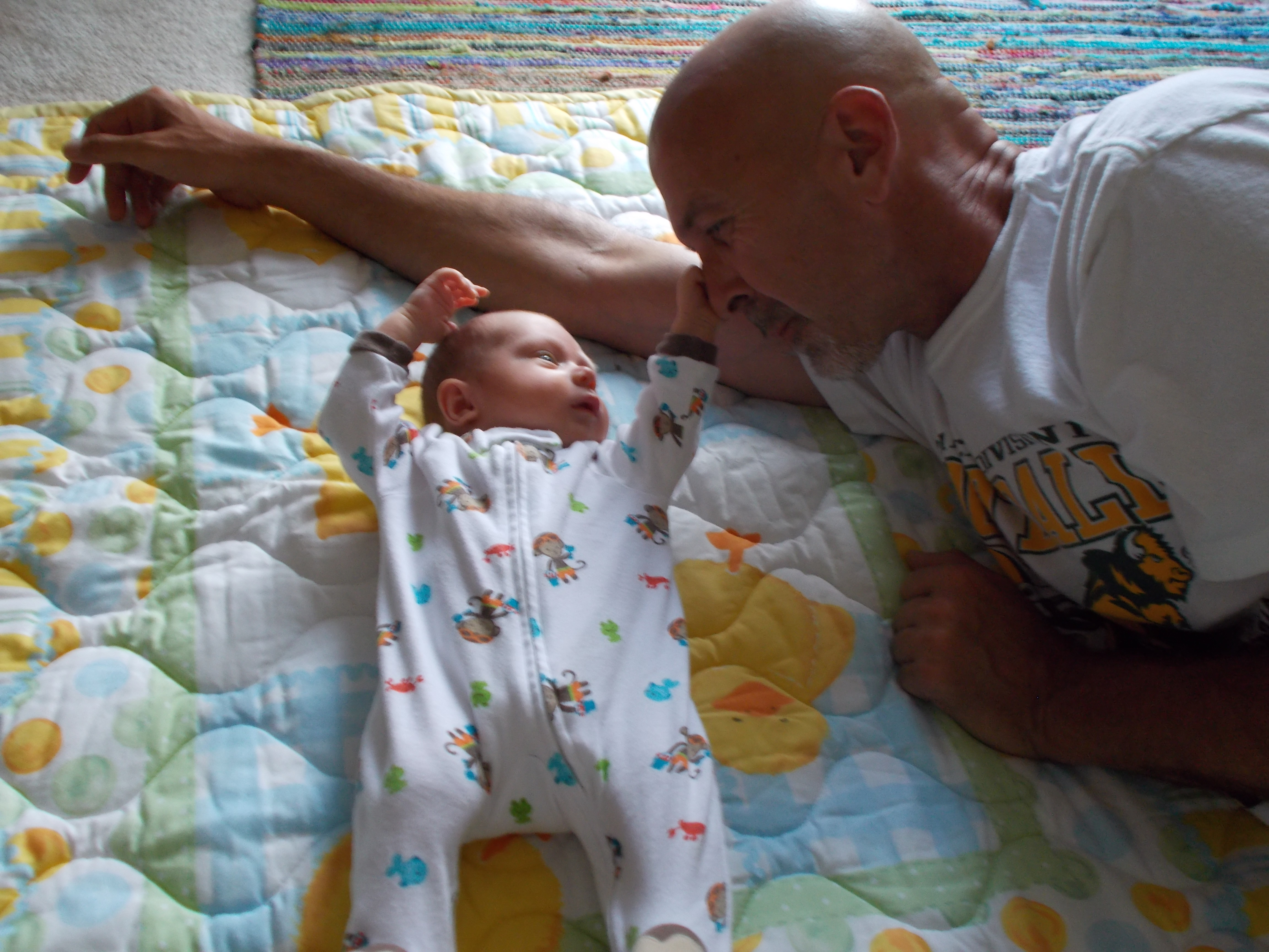 OMG – life sure has changed. Saturday night and my hands-down choice for entertainment is spending time with a one month old. Well, actually a one month old and 49 year old…part of the entertainment was definitely watching Lennon with Mike. What an interesting juxtaposition – big Mike and little Lennon – both transfixed with each other.