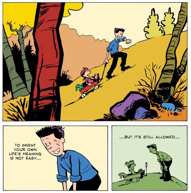 In my travels on the internet I sometimes run across great stuff that I wasn’t looking for, but feel obliged to grab and share on my blog. Such is the case with a heartwarming tribute comic strip created by cartoonist Gavin Aung Than to honor Bill Watterson the creator of the much beloved Calvin & Hobbes comic strip. The tribute strip is an homage by Than to both Watterson’s illustration style and his words. The inspiration for the strip came from a commencement speech Watterson gave at Kenyon College in 1990.