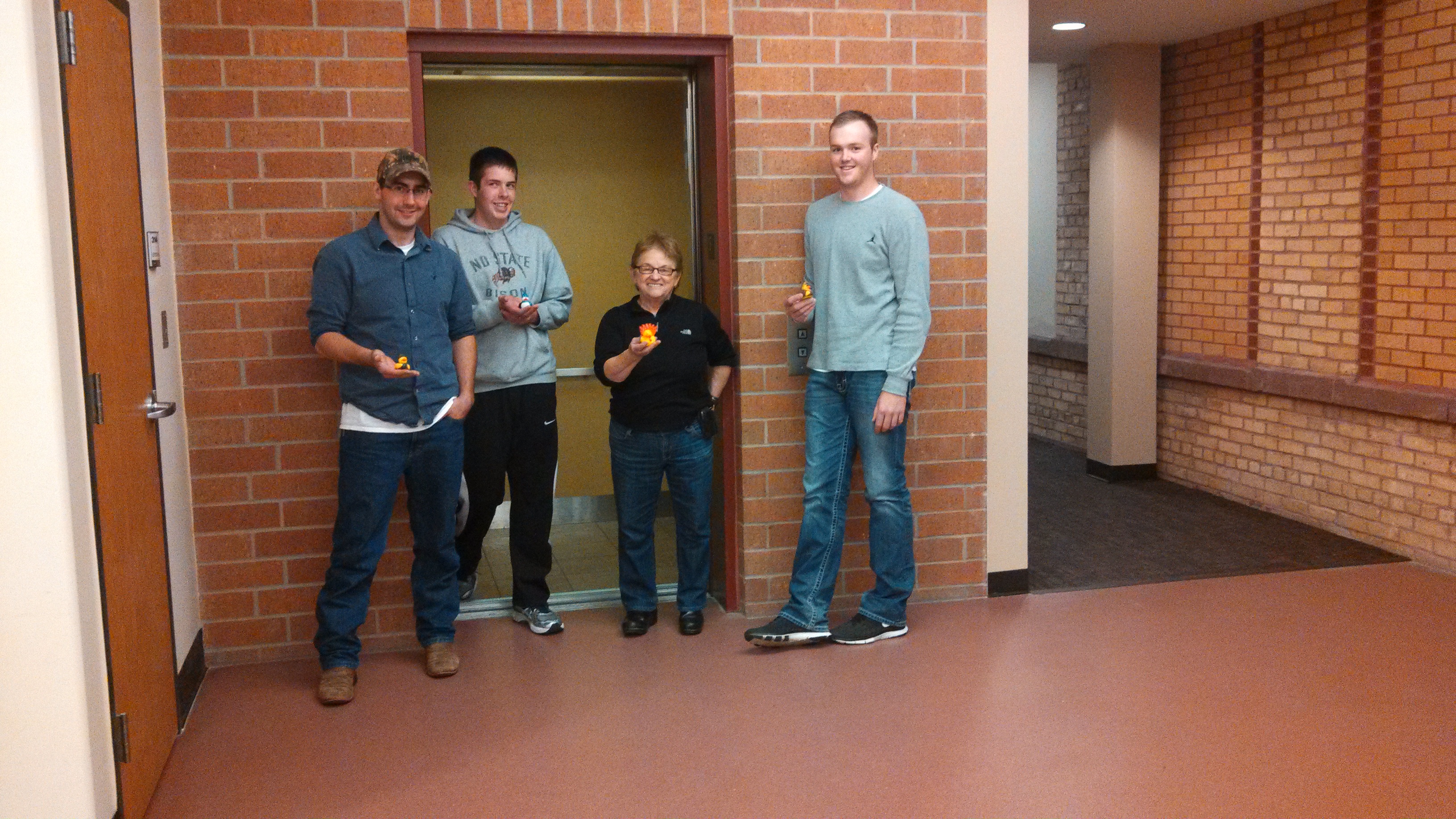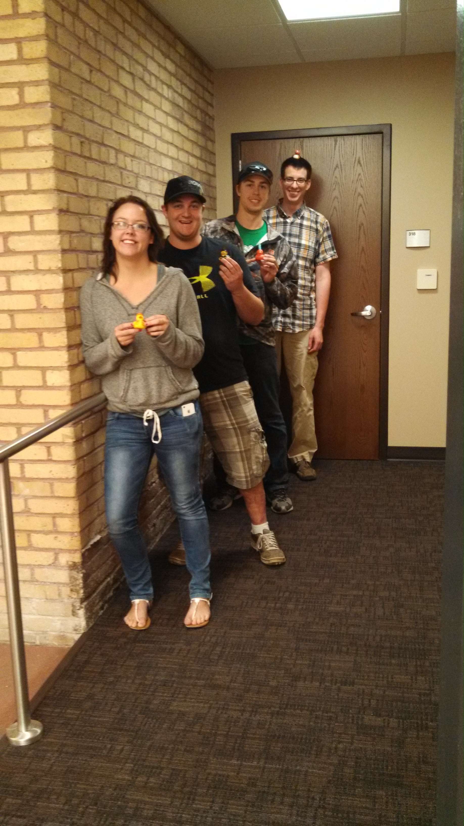 If you are in the Fargo-Moorhead area tomorrow I encourage you to attend the Expo, learn more about how you can be better prepared, and grab a duck to remind you to be ready for whatever emergencies or disasters may occur. I leave you tonight with some photos of my bright and shiny students posing with their own personal ducks. Take a good look at these faces – they are the folks who will working in the public, private, and non-profit sectors in the future helping to keep people and property safe – these are the emergency management professionals of the future. And yes, it all starts here with rubber ducks. 😉